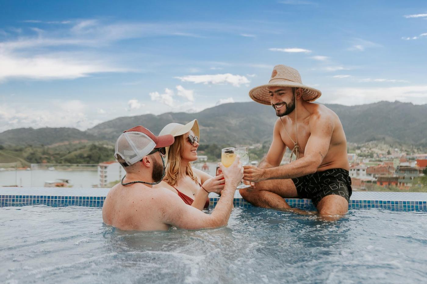 Hotel Santorini features an outdoor swimming pool, garden, a terrace and bar in Guatapé. This 4-star hotel offers free WiFi. The property is non-smoking and is located 3 km from Piedra del Peñol.